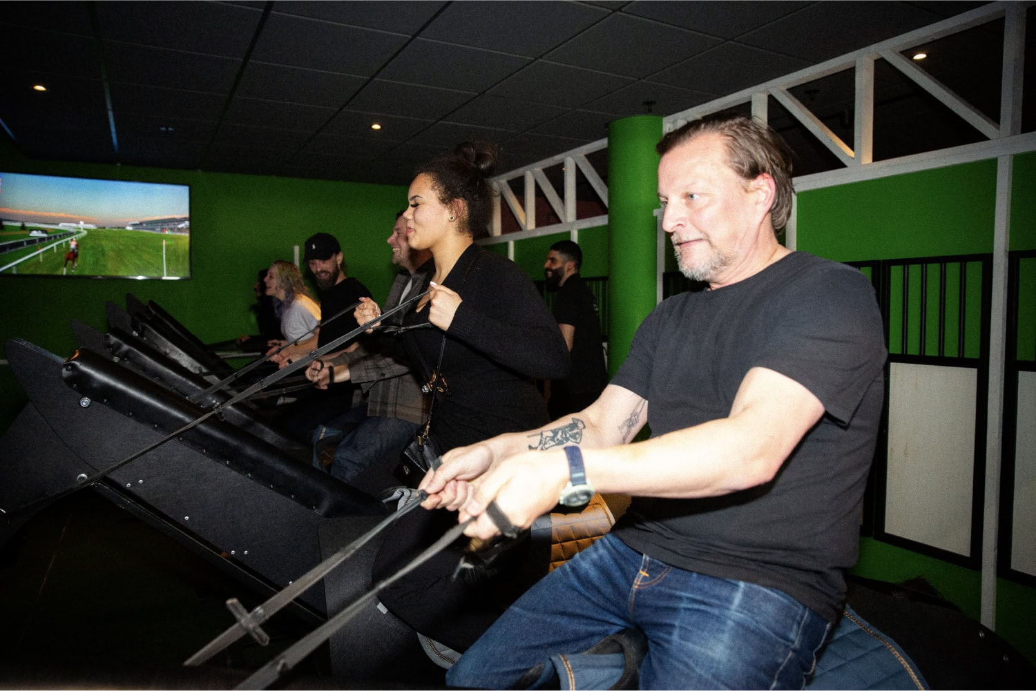 Det är inte konstigt om träningsvärken smyger sig på lite imorgon. Armar och ben jobbar nämligen i harmoni när du intar ledningen i det rafflande hästloppet. Hoppa upp på hästen och ta reda på om du är gängets nya framstående jockey!